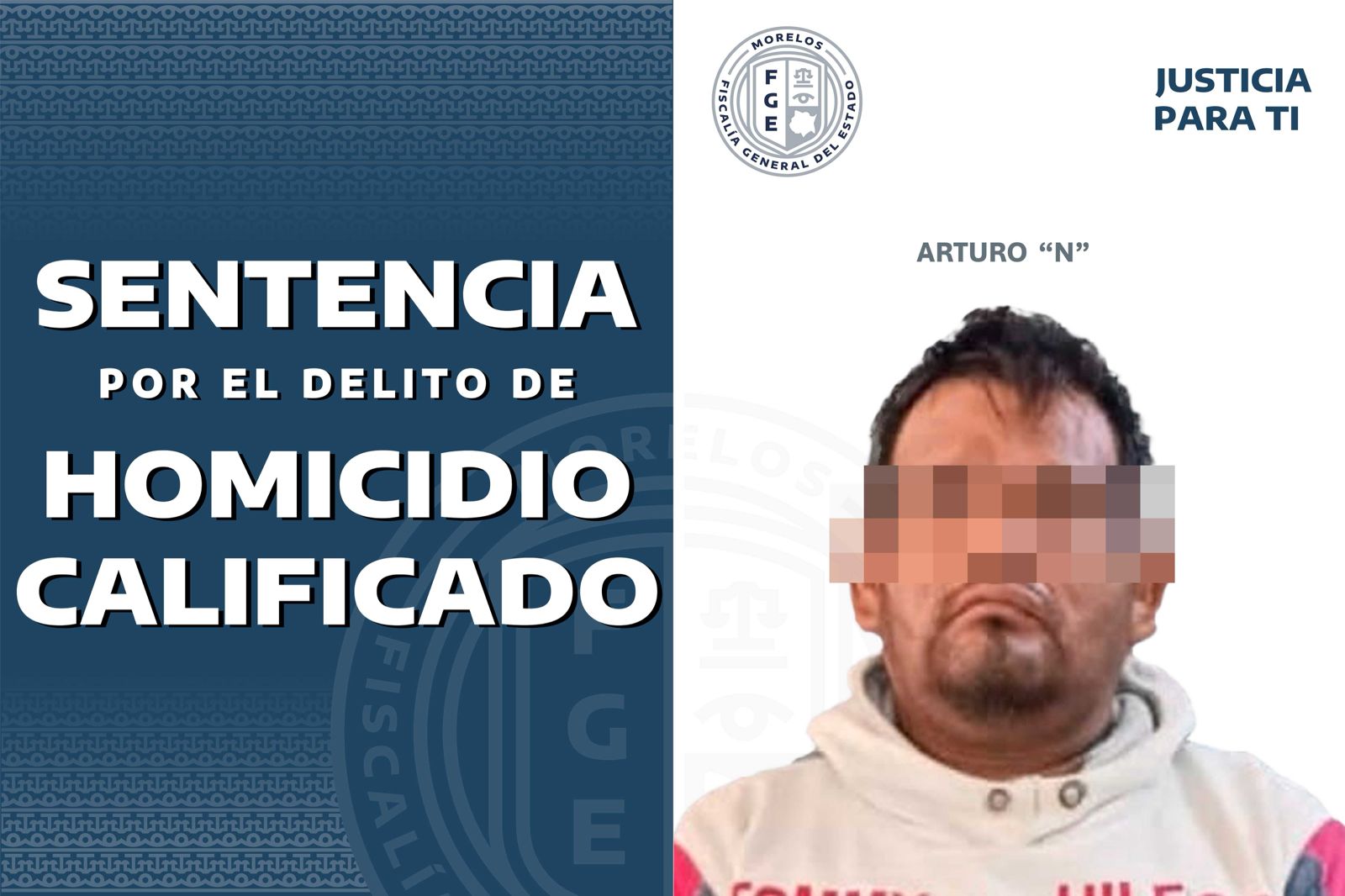 Una sentencia condenatoria de 20 años de prisión en contra de Arturo “N” obtuvo la Fiscalía General del Estado (FGE) de Morelos, tras acreditar su responsabilidad penal en el delito de homicidio calificado, en hechos suscitados en el 2018 en el municipio de Axochiapan.