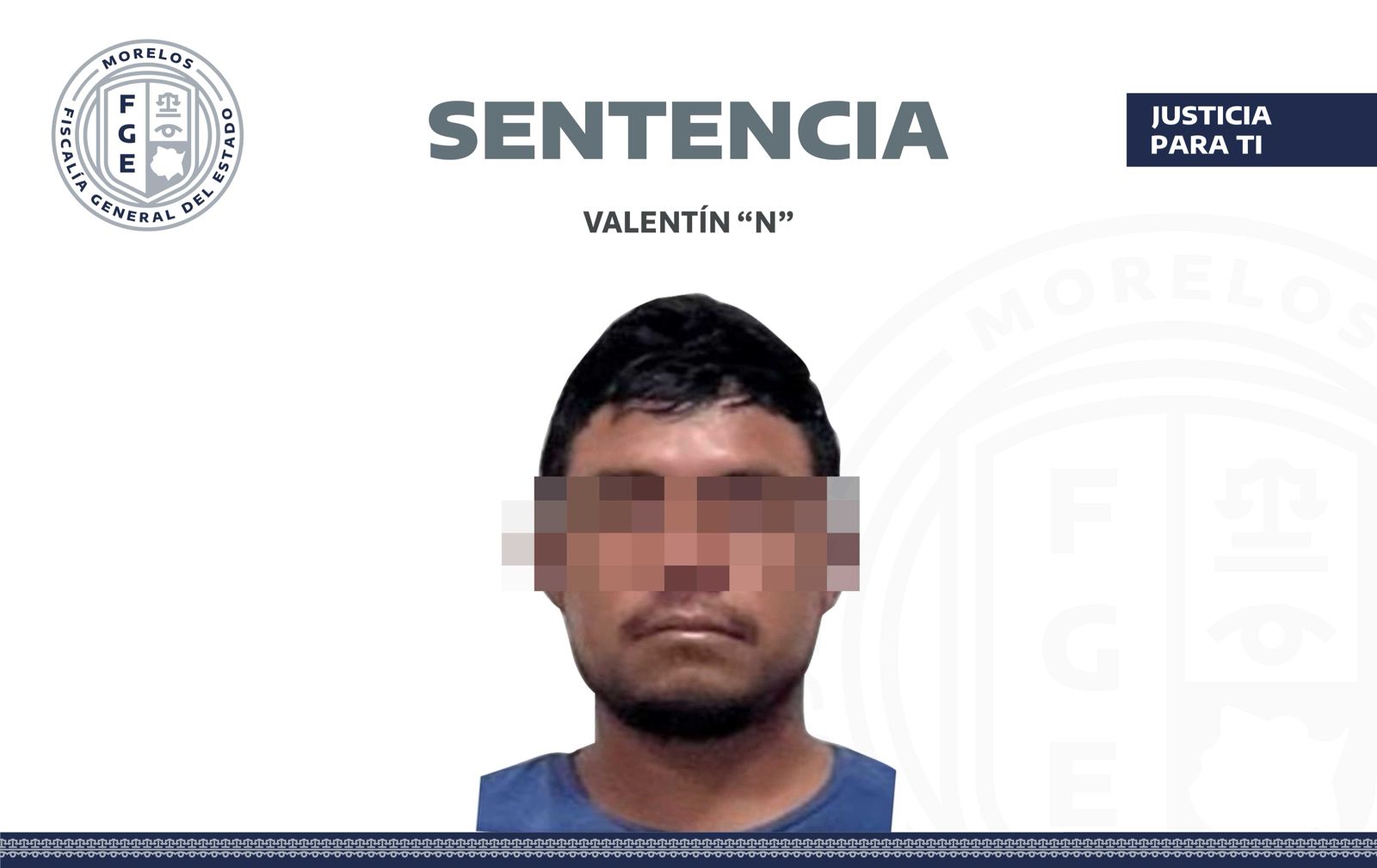 A 20 años de prisión fue sentenciado Valentín “N”, luego de que la Fiscalía General del Estado (FGE) de Morelos acreditara su responsabilidad penal en el delito de violación en perjuicio de una adolescente, en hechos suscitados en el 2023.