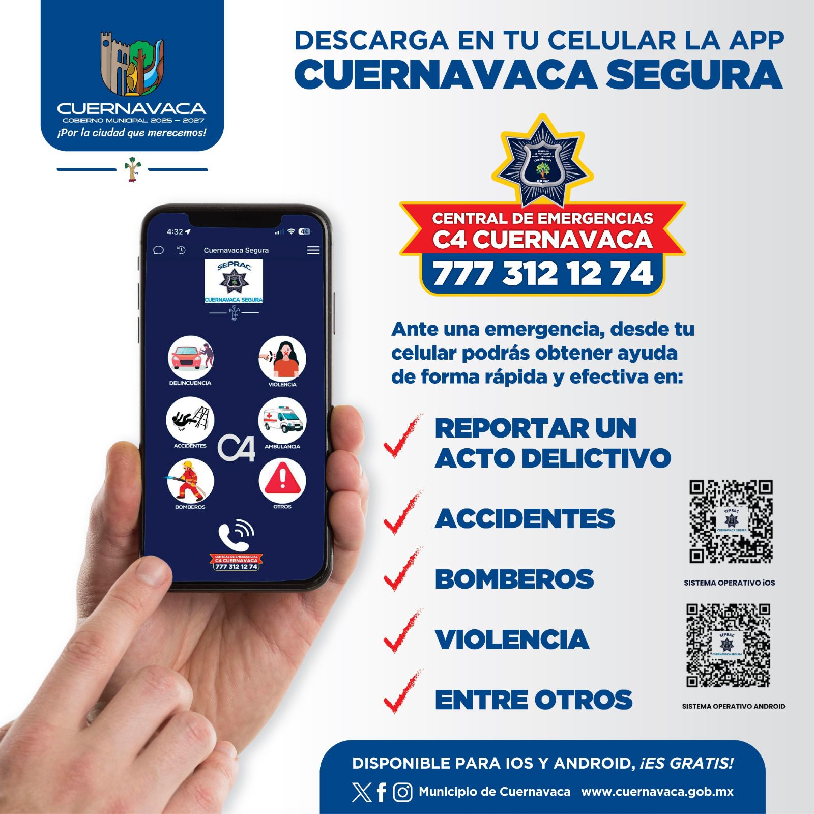 Si observa personas merodeando cajeros automáticos, vehículos o negocios, o detecta movimientos inusuales en su colonia, repórtelo de inmediato al 777 312 12 74 o mediante la aplicación C4 Cuernavaca Segura.