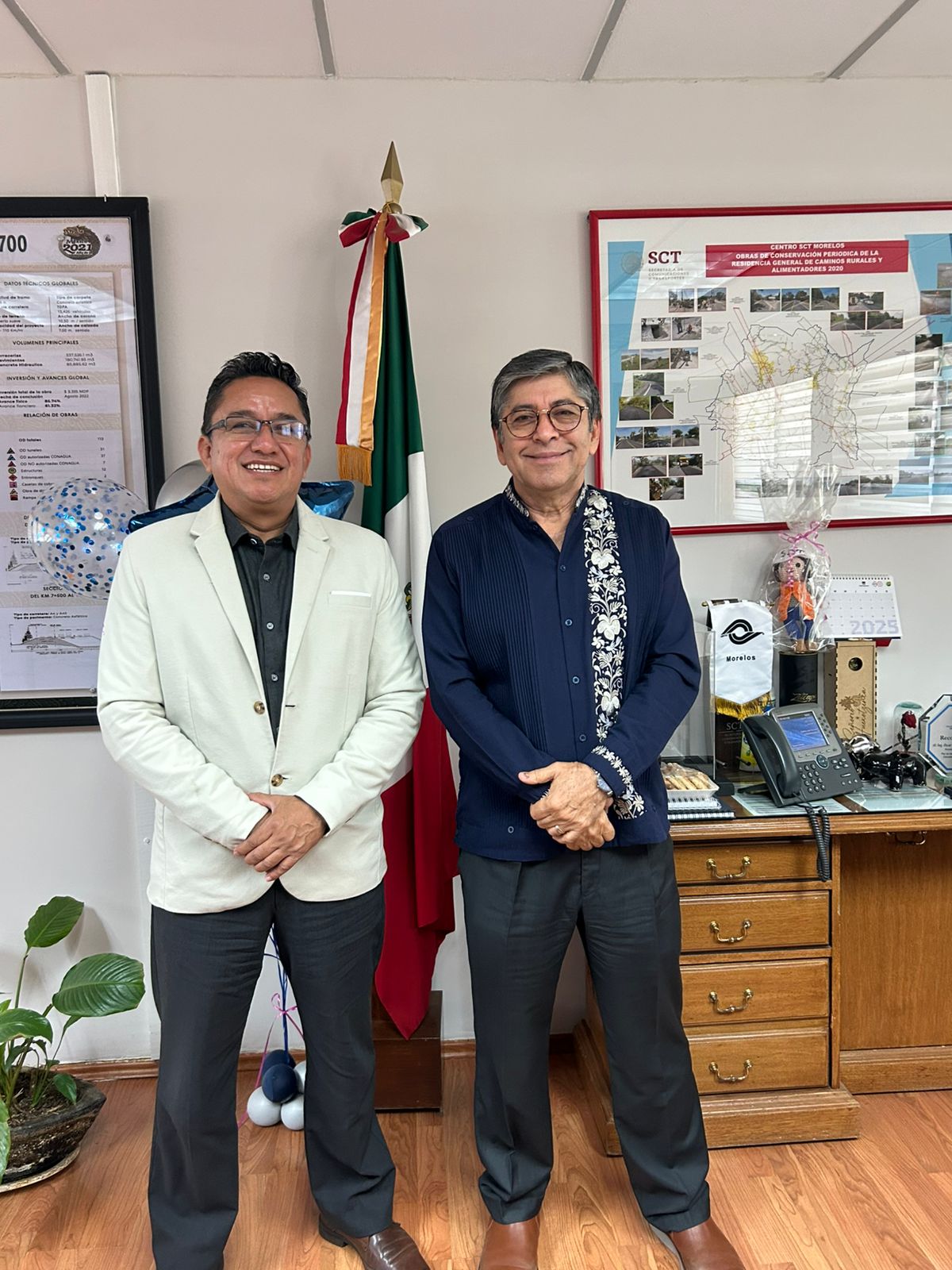 El director general de Atención Ciudadana de la Secretaría de Gobierno, Braulio Olivar Hernández, sostuvo una reunión de trabajo con Óscar Rigoberto Coello Domínguez, director general del Centro de la Secretaría de Infraestructura, Comunicaciones y Transportes (SICT) Morelos.