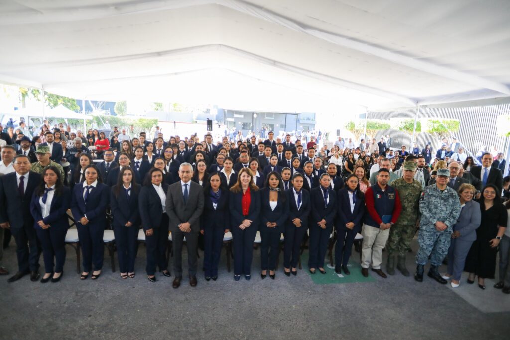 Ante las y los egresados, autoridades civiles y militares, puntualizó: “La seguridad es nuestro máximo objetivo, y estamos aquí en Morelos trabajando en los cuatro ejes fundamentales que nos fijó la presidenta de la República: atención a las causas, coordinación institucional permanente, fortalecimiento de las fuerzas de seguridad e inteligencia para lograr que nuestro estado se conduzca hacia la paz”.