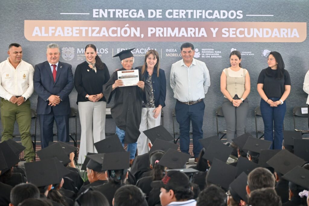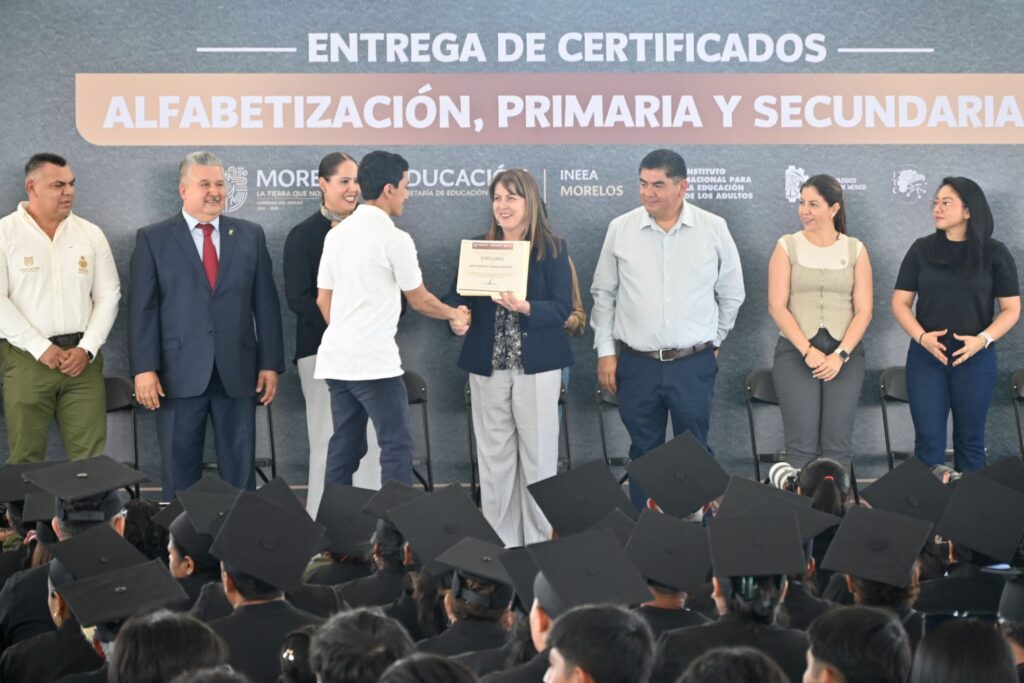 Con el propósito de reducir el rezago educativo en la entidad, la gobernadora Margarita González Saravia entregó mil 269 constancias y certificados a personas mayores de 15 años que concluyeron su proceso de alfabetización, primaria o secundaria mediante el programa AlfabetizaTec, implementado por el Instituto Estatal de Educación para Adultos (INEEA) Morelos en coordinación con el Instituto Tecnológico de Cuautla (ITC) y el Instituto Tecnológico de Zacatepec (ITZ).