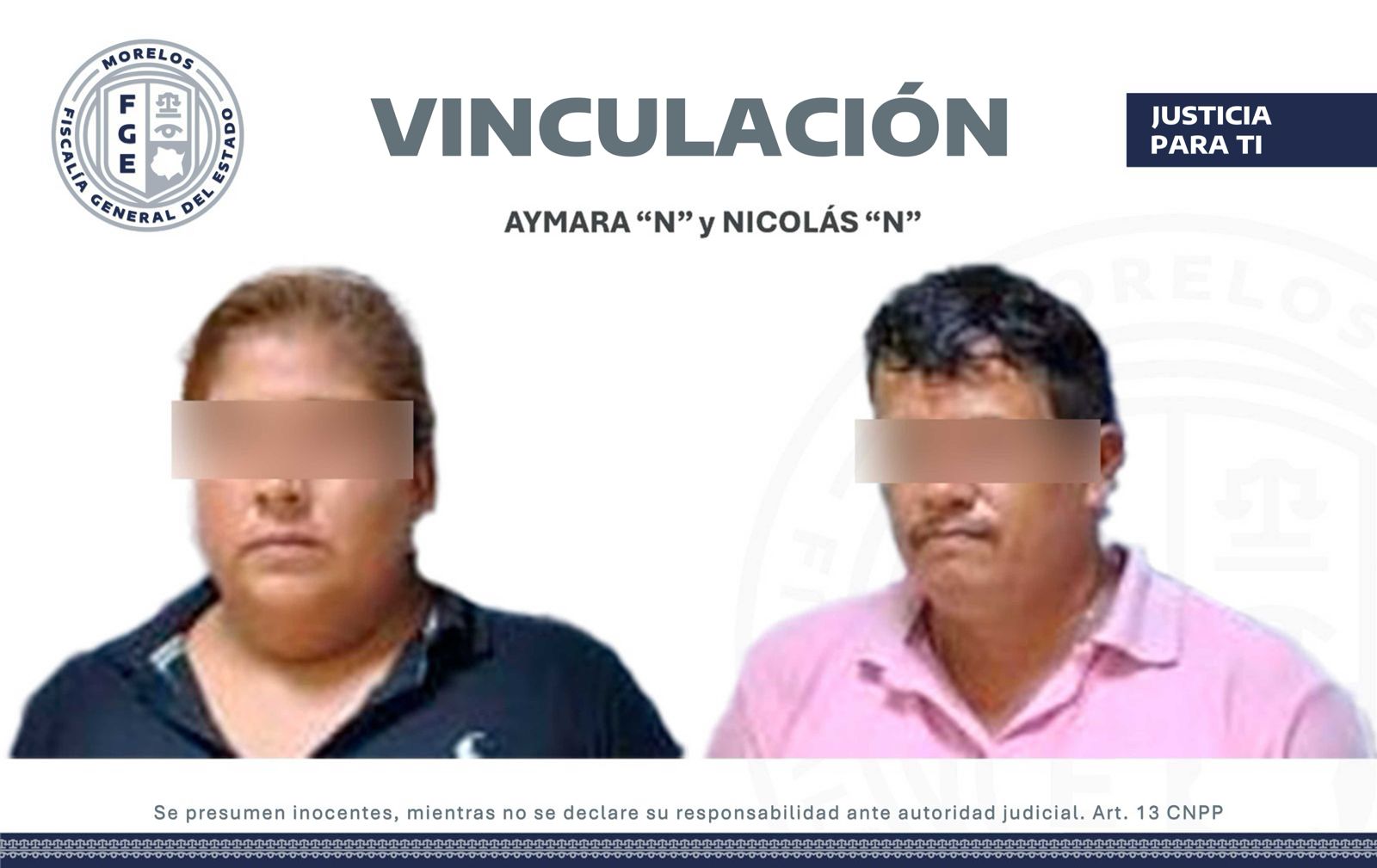 Debido a ello, el MP especializado obtuvo la orden de aprehensión en contra de la pareja, cumplimentada por personal de la Agencia de Investigación Criminal (AIC) en coordinación con elementos de la Secretaría de Seguridad y Protección Ciudadana (SSPC) Morelos, en la colonia Paraíso Montessori de Cuernavaca, para llevarlos ante el juez que los vinculó a proceso.