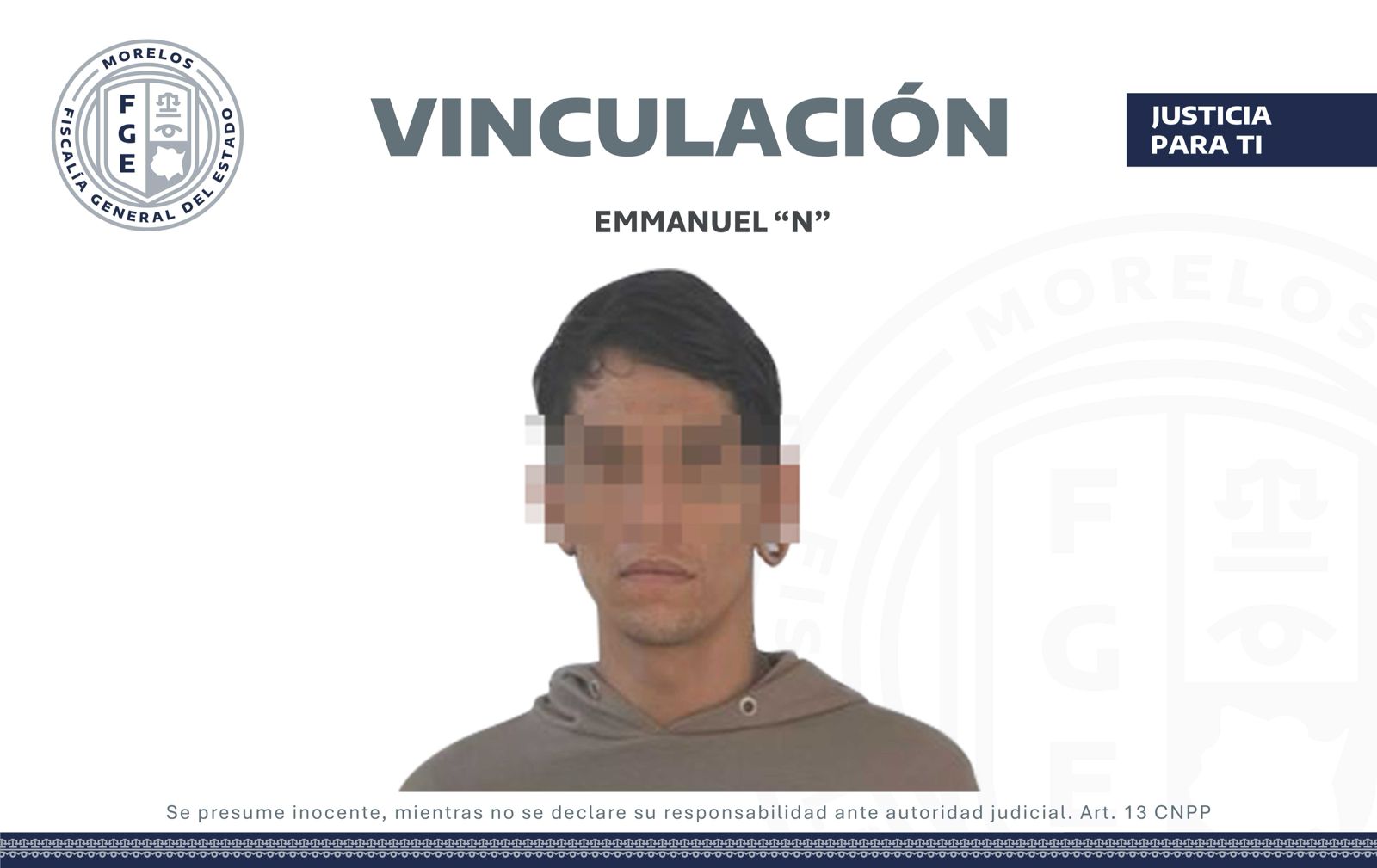 La Fiscalía Regional Oriente obtuvo un auto de vinculación a proceso en contra de Emmanuel “N”, por la probable comisión del delito de robo calificado a comercio, en hechos suscitados en el municipio de Cuautla.