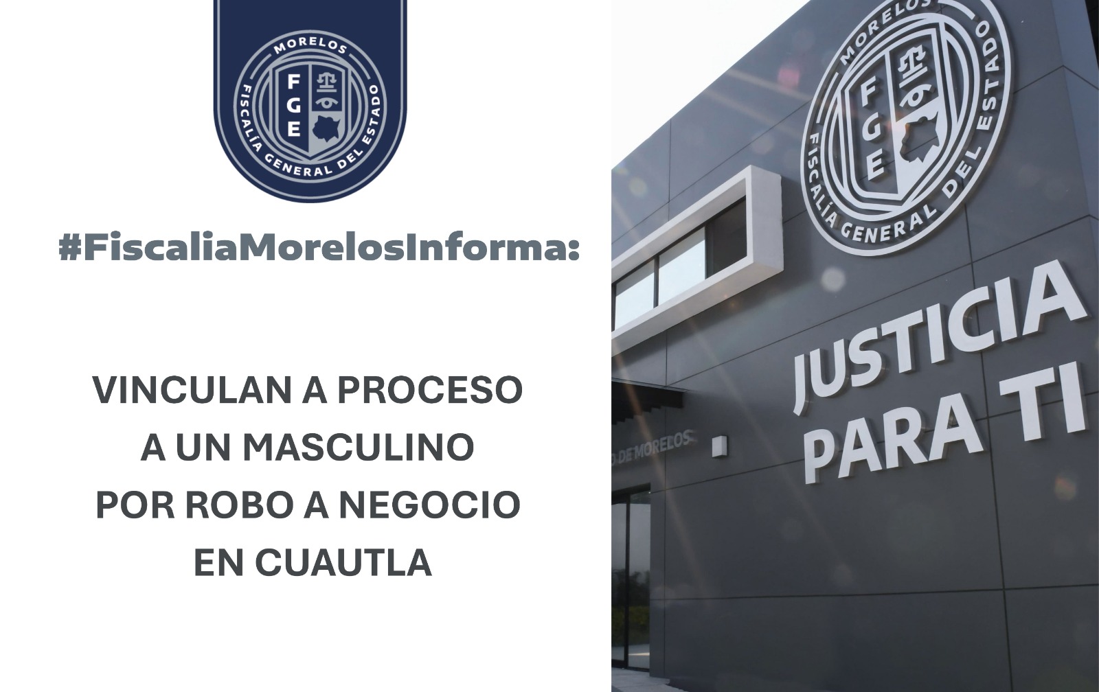 La Fiscalía Regional Oriente obtuvo un auto de vinculación a proceso en contra de Juan Ariel “N”, por la probable comisión del delito de robo calificado, luego de que presuntamente fuera sorprendido con varios artículos hurtados cuando salía de un negocio en el municipio de Cuautla.